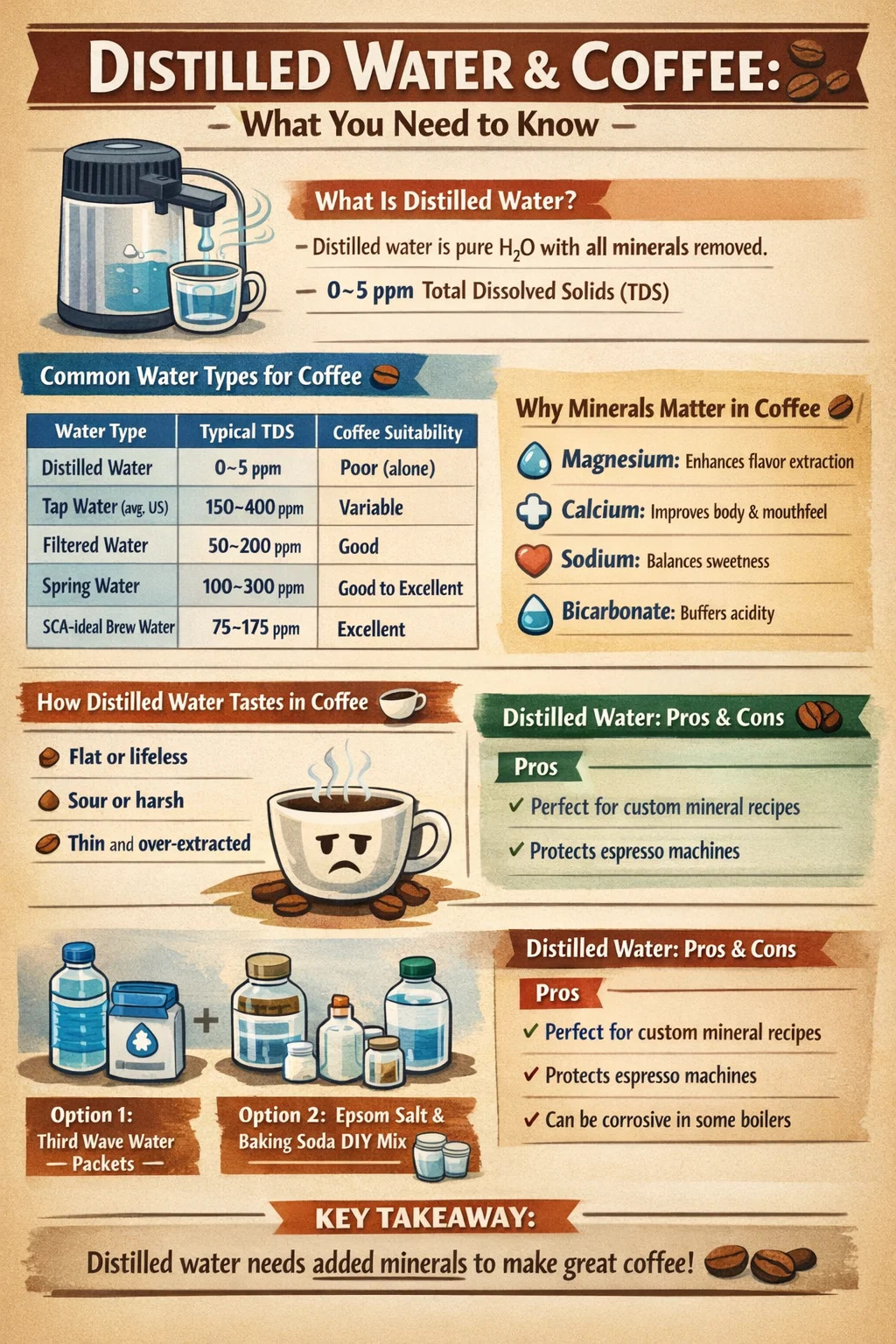 Acest articol dezvăluie exact ce se întâmplă când folosiți apă distilată pentru cafea, ce spune știința, modul în care distilatorii de apă iau în considerare și ce alternative vă oferă rezultate mai bune fără presupuneri.