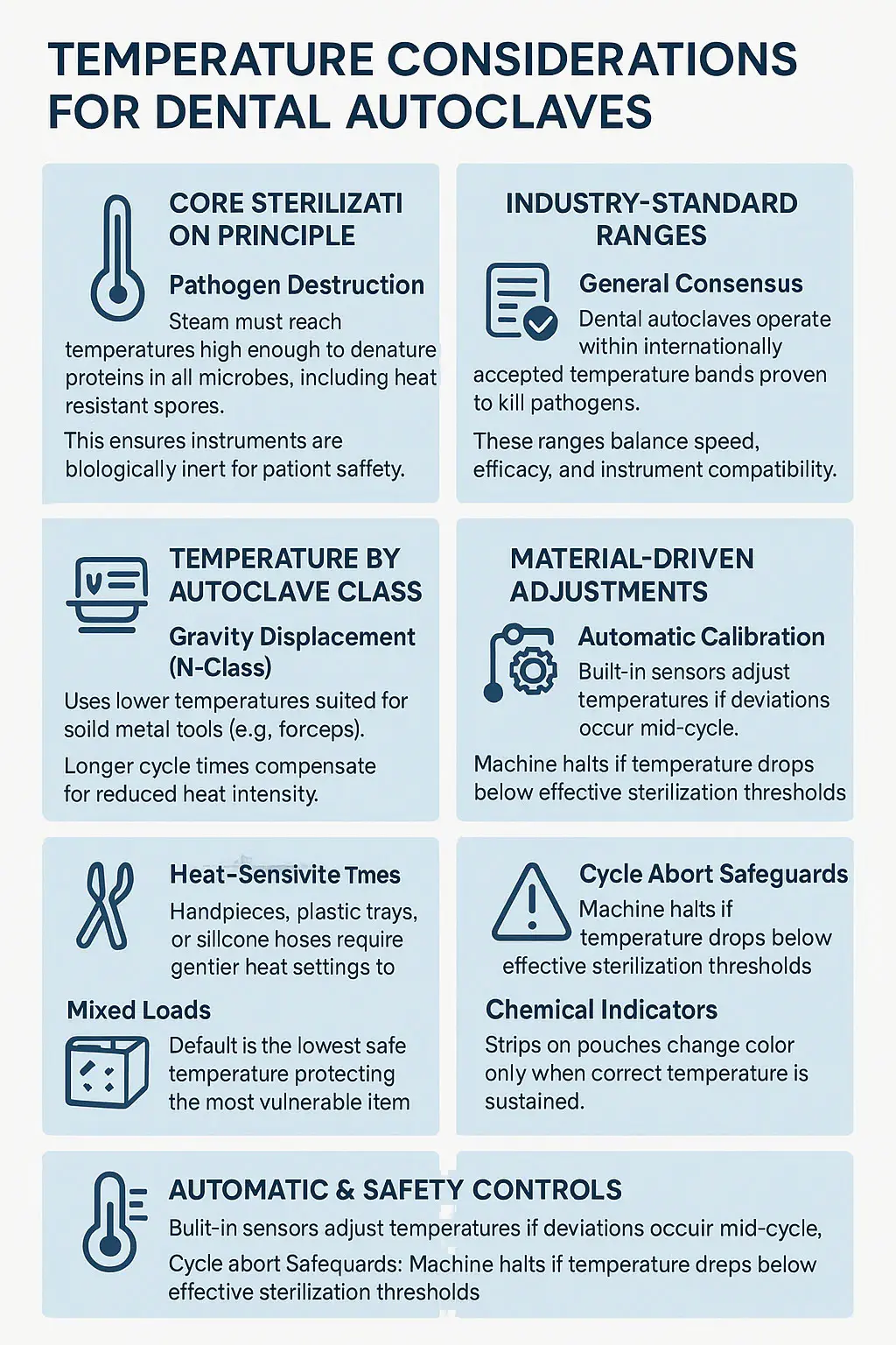 Iată o defalcare a considerațiilor legate de temperatură autoclave dentare :